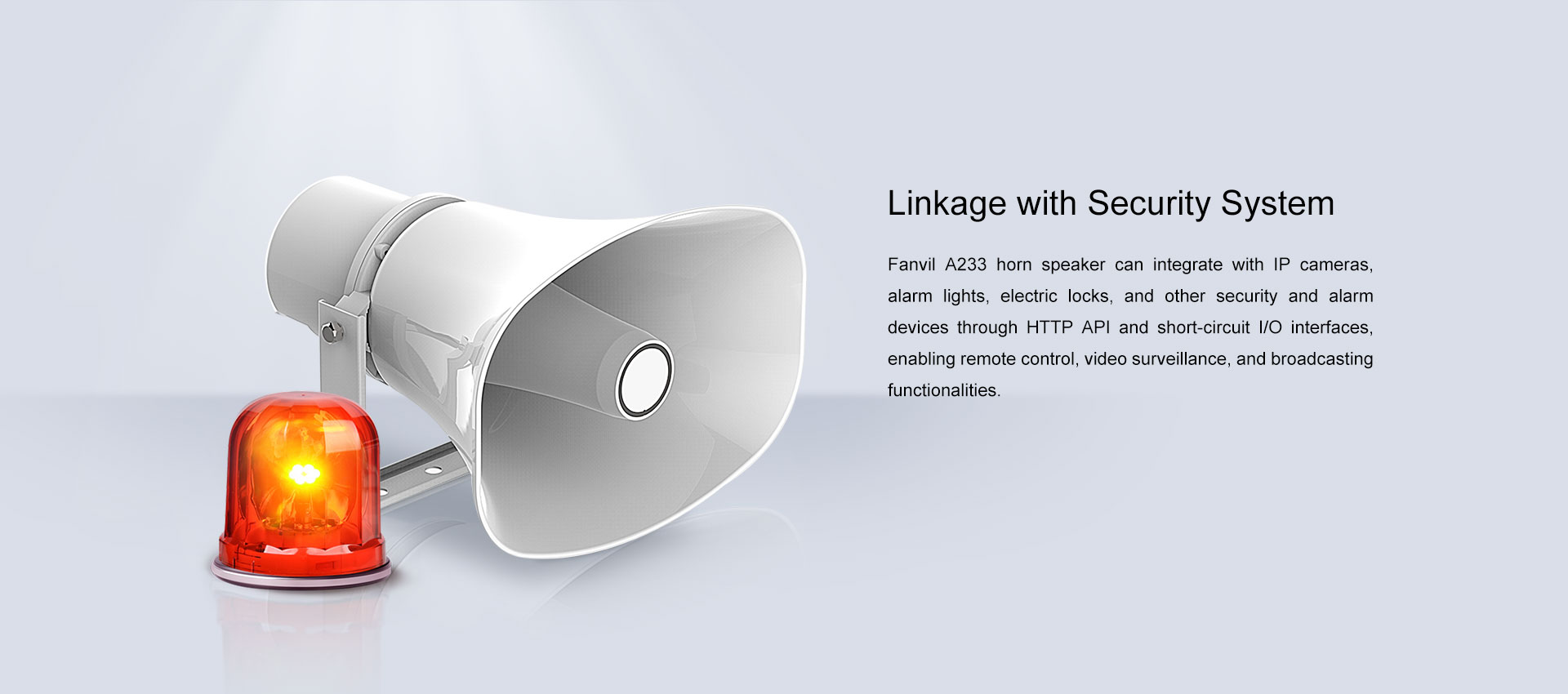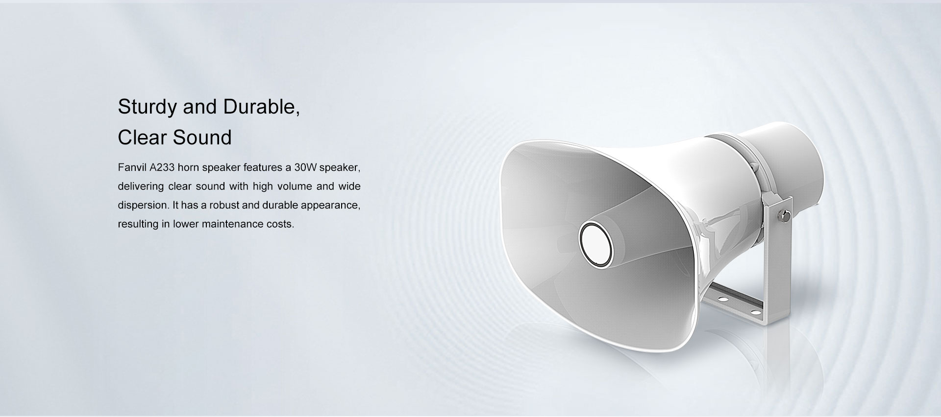 Loading... Please wait...Fanvil A233 horn speaker is a commercial-grade IP audio terminal. It can function independently as an audio system or integrate with external systems such as unified communication systems, video surveillance systems, Fanvil broadcast & intercom system, access control systems, digital billboards, and fire alarm systems, facilitating unified configuration and operation. The IP66 protection rating ensures effective waterproofing and dustproofing, making it suitable for most outdoor environments.